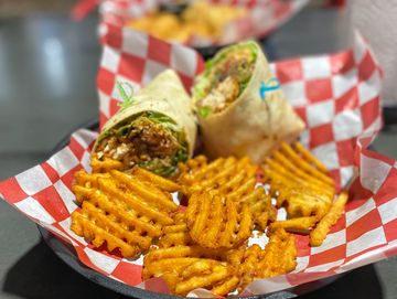 Wraps served on a plain, tomato basil, or jalapeño cheddar wrap.